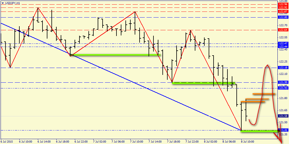 1) Ждем пару в зоне 122.18-122.44 для продаж по тренду с движением под 121.00.