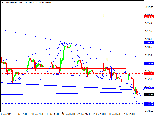 Золото продолжает развитие волну на снижение. Ожидаем отработку локальной цели на уровне 1140. Далее на очереди - техническая коррекция с возвратом к уровню 1173. Затем - опять снижение на отработку уровня 1113.