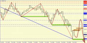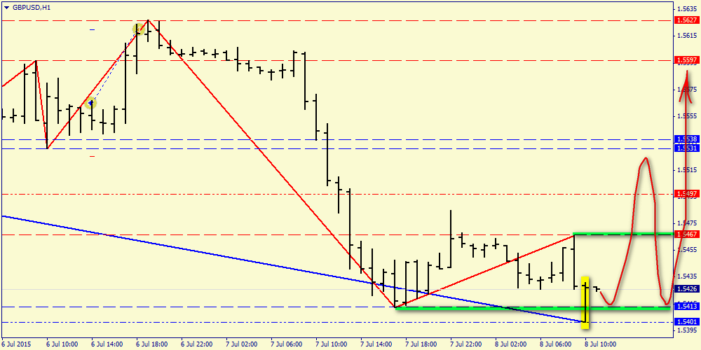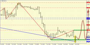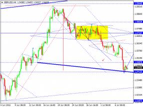 Часовой график: неплохой пинбар с ложным пробоем последнего днища. В случае отката в зону 50% пина (1.5415) можно покупать со стопами 20 пп и профитом на пивоте 1.5531. Затем новый заход в покупки будет возможен по полученному O&U от 1.5413.