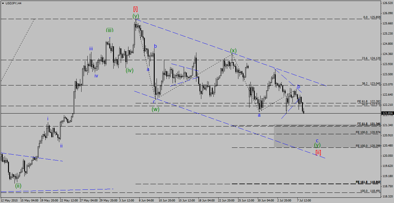 Все по плану. Немного даже прояснилась ситуация с волной (y). Волна b of (y) - треугольник. Текущее движение резкое и последнее. Волна с of (y) формивует третью волну на мелких таймфреймах. Область для завершения волны [ii] - 120.40 - 121.30. Хороший уровень поддержки 121.340.