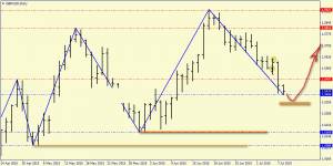 Валютная пара доллар франк смогла исполнить только волну роста на расширение диапазона вверх. На очереди ожидаем импульс снижения к уровню 0.9360. Далее ожидаем ещё один выброс цены к уровню 0.9545.