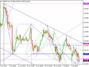 Сценарии: продавливание дальше вниз, затем свинг вверх на Н1 в зону 122.18-122.44 и новое падение.