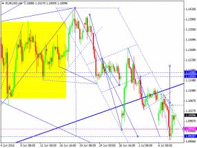Пробили минимум предполагаемой волны D, но должного ускорения вниз не пошло, поэтому основной сценарий прежний. Формирование волны E. Цель в районе 1.1350.