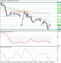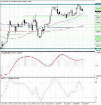 Курс валюты расположен значительно ниже скользящих средних с периодами 34, 55, 89 и 144, которые направлены вниз и указывают на сохраняющиеся медвежьи настроения, а также являются рядом уровней сопротивления 0.7555, 0.7605, 0.7660 и 0.76775.