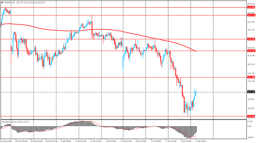 Утренний технический анализ по USD/JPY Сопротивление 3: Y122.95 (максимум 6 июля) Сопротивление 2: Y122.55 (MA 20 H1) Сопротивление 1: Y121.70 (максимум американской сессии 8 июля) Текущая цена: Y121.18 Поддержка 1: Y120.40 (минимум 8 июля) Поддержка 2: Y119.80 (минимум 19 мая) Поддержка 3: Y119.50 (минимум американской сессии 18 мая)
