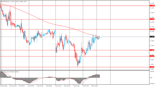Стоит отметить, что на часовом графике сформировалась бычья дивергенция по индикатору MACD, что сигнализирует о возможной смене направления движения цены.
