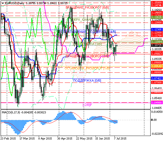 Пара EURUSD продолжает торговаться внутри облака Ишимоку на дневном таймфрейме, нижняя граница которого на 1.10 оказывает поддержку.