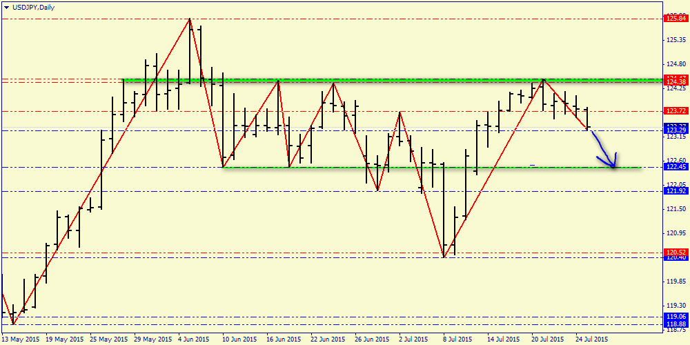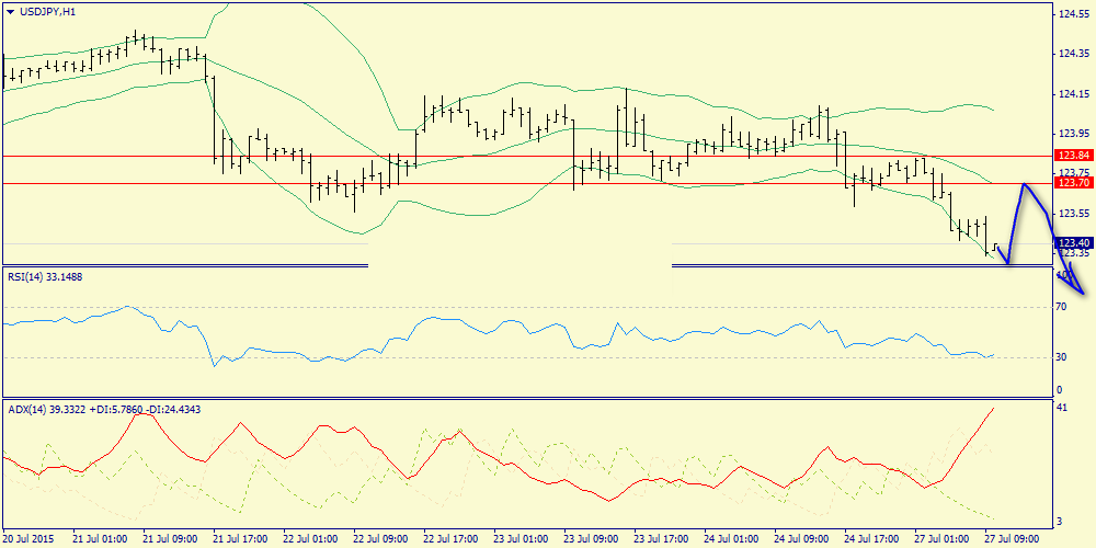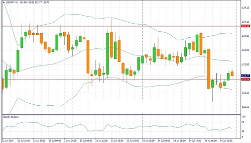 Дневной технический анализ по USD/JPY Сопротивление 3: Y124.62 (максимум 10 июня) Сопротивление 2: Y124.18 (максимум 23 июля) Сопротивление 1: Y123.85/95 (МА(100) и МА(200) для Н1) Текущая цена: Y123.26 Поддержка 1: Y122.90 (минимум 14 июля) Поддержка 2: Y122.39 (минимум 13 июля) Поддержка 3: Y122.00 (психологический уровень)