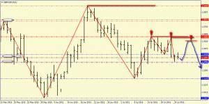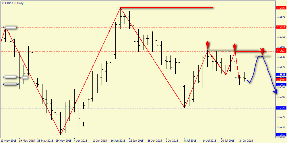 Дневной график: медведи продолжают выстраивать нисходящую структуру, для чего им достаточно не потерять последнюю вершину (1.5668), после чего они смогут пойти на пробой последнего дна (1.5466)