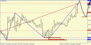 2) На окончании вероятного нисходящего свинга (зона 1.10) ищем сигналы к покупкам.