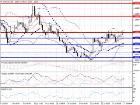 Дневной технический анализ по EUR/USD Сопротивление 3: $1.1278 (максимум 29 июня) Сопротивление 2: $1.1215 (максимум 10 июля) Сопротивление 1: $1.1124 (максимум 9 июля) Текущая цена: $1.1066 Поддержка 1: $1.1017 (максимум 23 июля) Поддержка 2: $1.0923 (МА(200) для Н1) Поддержка 3: $1.0868 (минимум 22 июля)