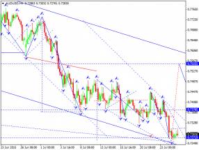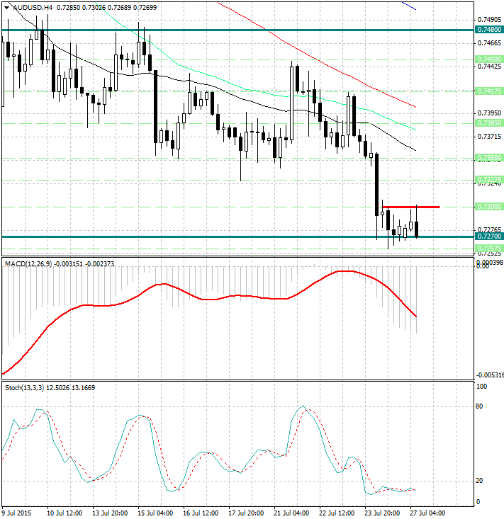 Возобновившееся снижение цен на сырьевые ресурсы нивелировало положительный заряд рынка от высказанных ранее оптимистичных заявлений главы РБА Г. Стивенса, в отношении перспектив складывающейся финансовой ситуации в Австралии, что в свою очередь привело к падению цены по паре AUD/USD ниже отметки 0.7260, с последующей ее стабилизацией возле уровня 73-й фигуры.