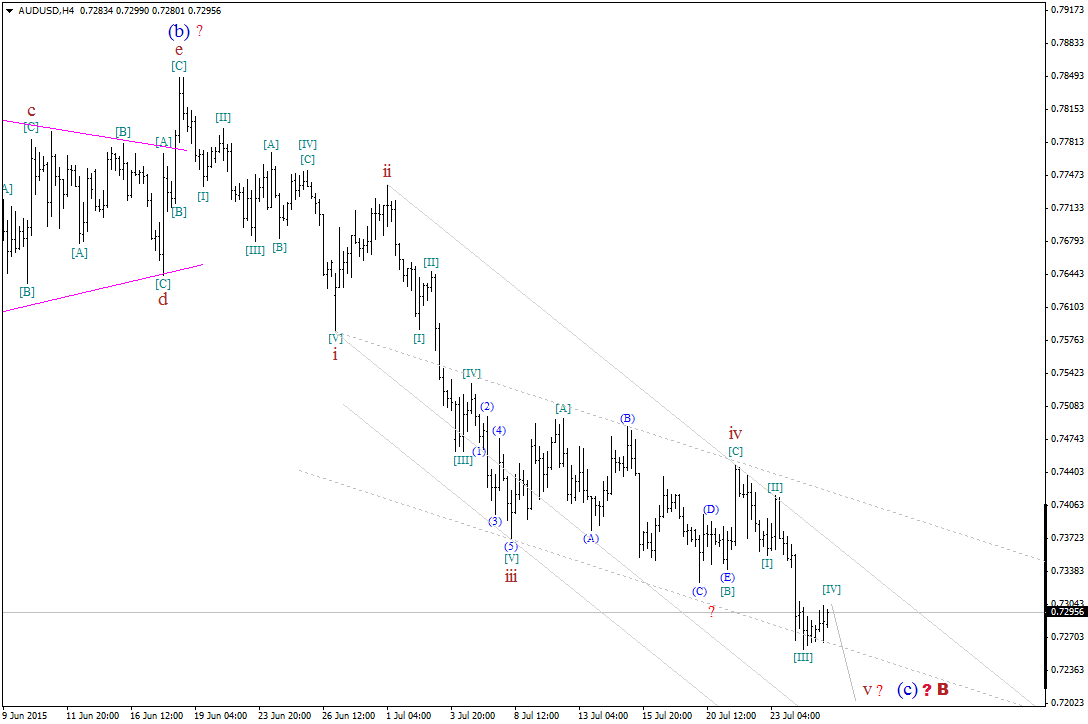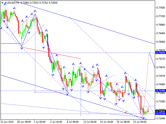 Таким образом, складывающаяся, в результате такого падения цены, волновая ситуация позволяет предполагать, что в пределах формирующегося от максимума 18-го июня понижающего участка тренда, валютная пара значительно усложнила волновую структуру волны iv, в (с), в предполагаемой В, и после 21-го июля формирует волну v, в (с), которая к открытию сегодняшней торговой сессии еще не выглядела завершенной. Если это так, то валютная пара сохраняет неплохие перспективы для возобновления нисходящего движения к уровню 72-й, а возможно, даже к 71-й фигуры.