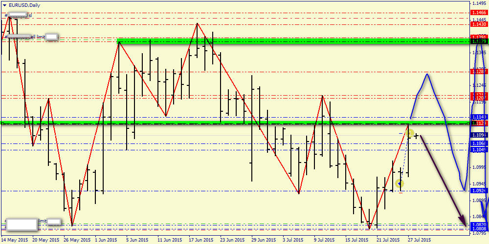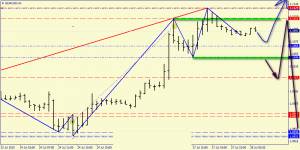 Скопление сопротивлений в районе выше уровня 1.1050 (желтый сектор), не позволило «быкам» развить успех и поднять цену к пробитой ранее линии тренда восходящего канала (синие линии). После касания уровня 1.1125/30 пара вернулись к понижению, и тестирует уровень 1.1050 как поддержку. Индикаторы несколько снизили агрессивность «бычьих» показаний, что может предупреждать о начале консолидации. Диапазоном боковой коррекции видится коридор 1.1130/25 – 1.1050/40, сила этих уровней сопротивления и поддержки хорошо отмечена кластерами уровней фибо всех этапов нисходящего движения от локального максимума 1.1440 до 1.0820/10. Выход из этого интервала обозначит перспективы на ближайшее время – пробой сопротивления 1.1130 укажет на «бычий» выбор рынка, а падение под 1.1040/50 на «медвежий».