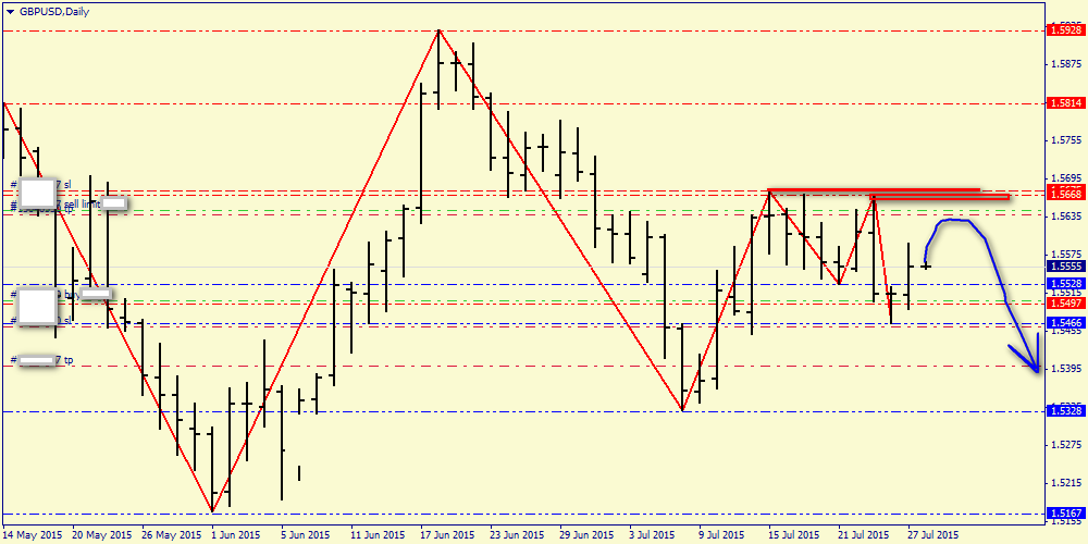 Дневной график: итак, получено первое пересечение в потенциальном восходящем свинге. Если быки а) обновят вчерашний максимум и б) не смогут прорваться выше последнего дна (1.5668) - то мы будем иметь хорошие среднесрочные возможности для нового входа вниз по среднесрочной тенденции.
