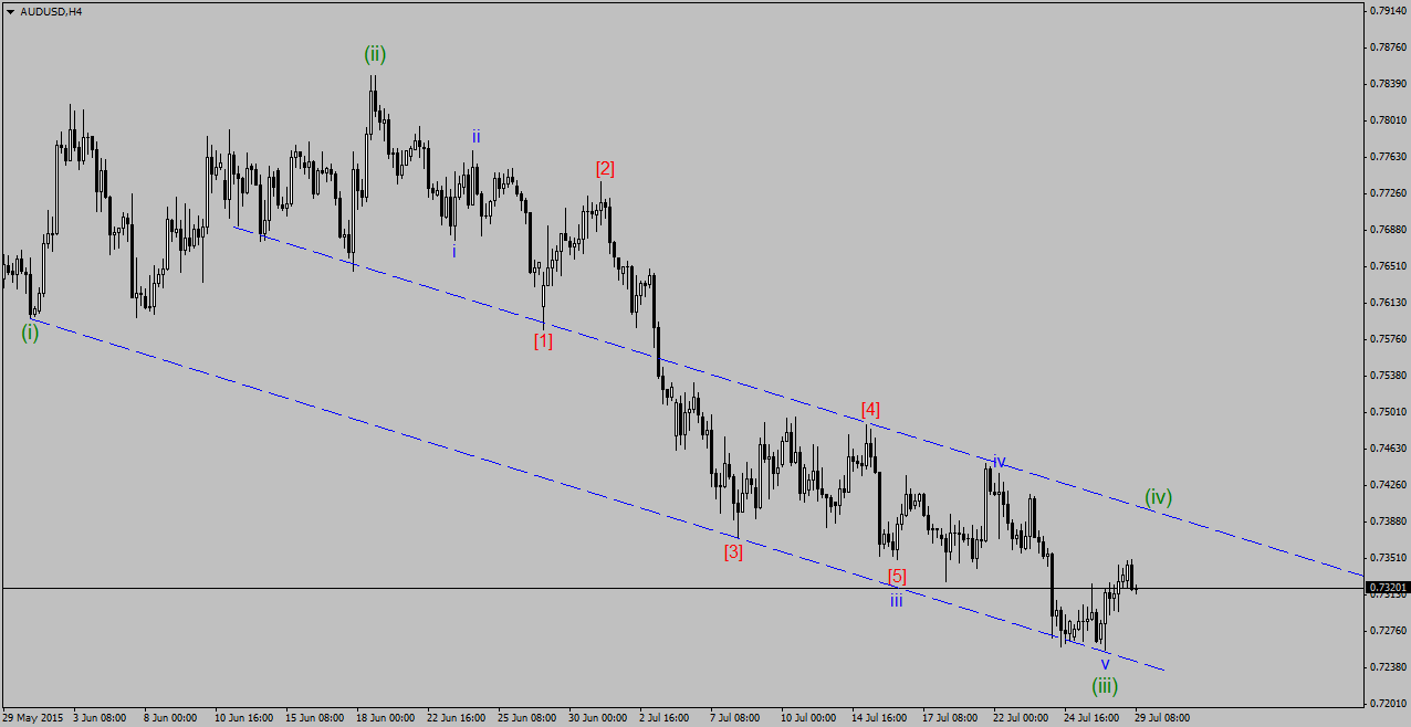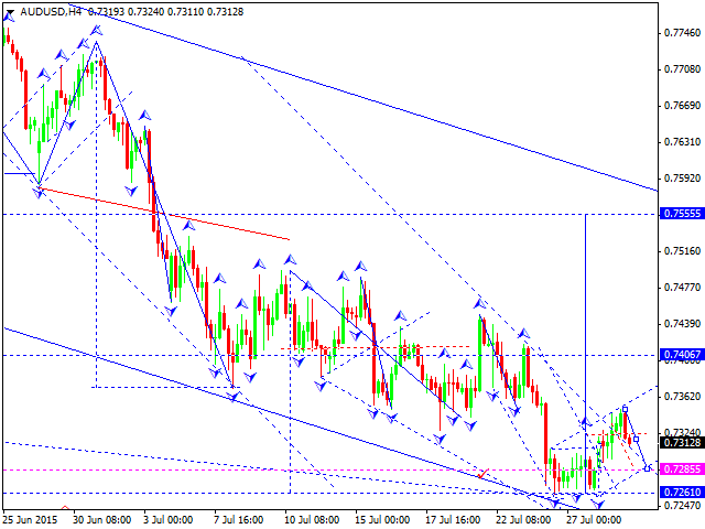 Австралийский доллар к доллару США сегодня торгуется под давлением на снижение. Рассматриваем это как коррекцию к уровню 0.7285. Далее будем рассматривать возможность развития очередной волны на пробой вершины первого импульса. Ожидаем отработку цели на уровне 0.7406.