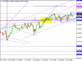 Валютная пара доллар франк сегодня торгуется под давлением в рост. Рассматриваем продолжение волны на отработку уровня 0.9762. Далее - опять возврат к уровню 0.9590.