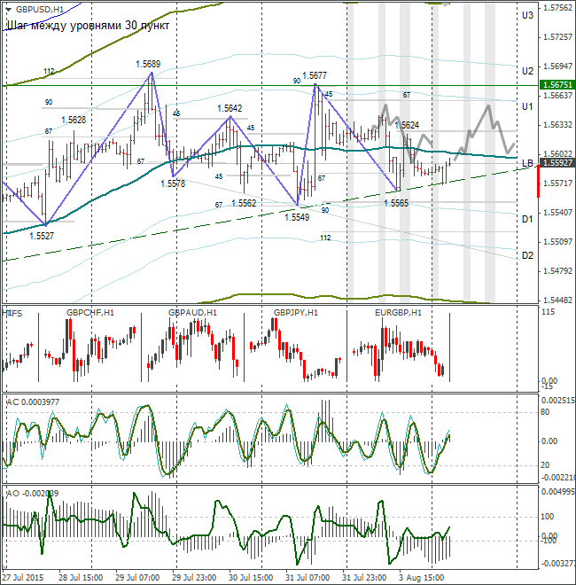 В Целом я доволен поведением фунта на торгах в понедельник. Курс фунт/доллар снизился до 1,5565 и на слабом ISM США вернулся к 1,5624. Дневная свеча за вчерашний день осталась в пятничном диапазоне. Полагаю, что сегодня колебания пары GBPUSD сохранятся в нём.