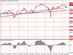 Дневной технический анализ по USD/CHF Сопротивление 3: Chf0.9770 (максимум 15 апреля) Сопротивление 2: Chf0.9718 (максимум 30 июля) Сопротивление 1: Chf0.9704 (максимум сессии) Текущая цена: Chf0.9691 Поддержка 1: Chf0.9635 (МА(200) для Н1) Поддержка 2: Chf0.9600 (психологический уровень) Поддержка 3: Chf0.9546 (минимум 31 июля)