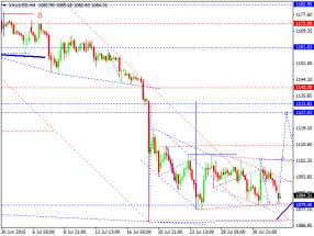 Золото сегодня торгуется с отбоем от нижней границы "Треугольника". Ожидаем рост к его верхней границе. В случае пробоя вверх будем рассматривать развитие коррекции к уровню 1131. Как альтернативу не исключаем новое снижение к нижней границе "Треугольника".