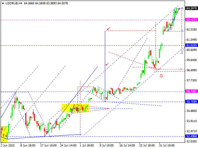 Российский рубль вслед за нефтью обновляет свои максимумы. На сегодня ожидаем завершение этой волны растяжения и снижение к уровню 61.00. Ожидаем формирование разворотной модели на начало снижения к уровню 52.50.