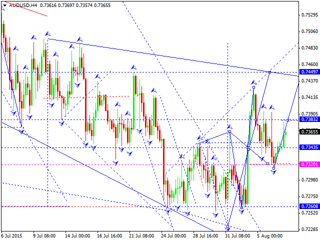 Австралийский доллар к доллару США торгуется в пятой структуре роста с целью на отработку уровня 0.7450. Рынок пока исполнил только половину этой волны. Допускаем незначительное снижение, и далее - опять рост на отработку цели.