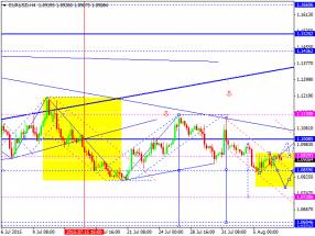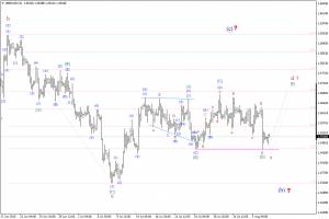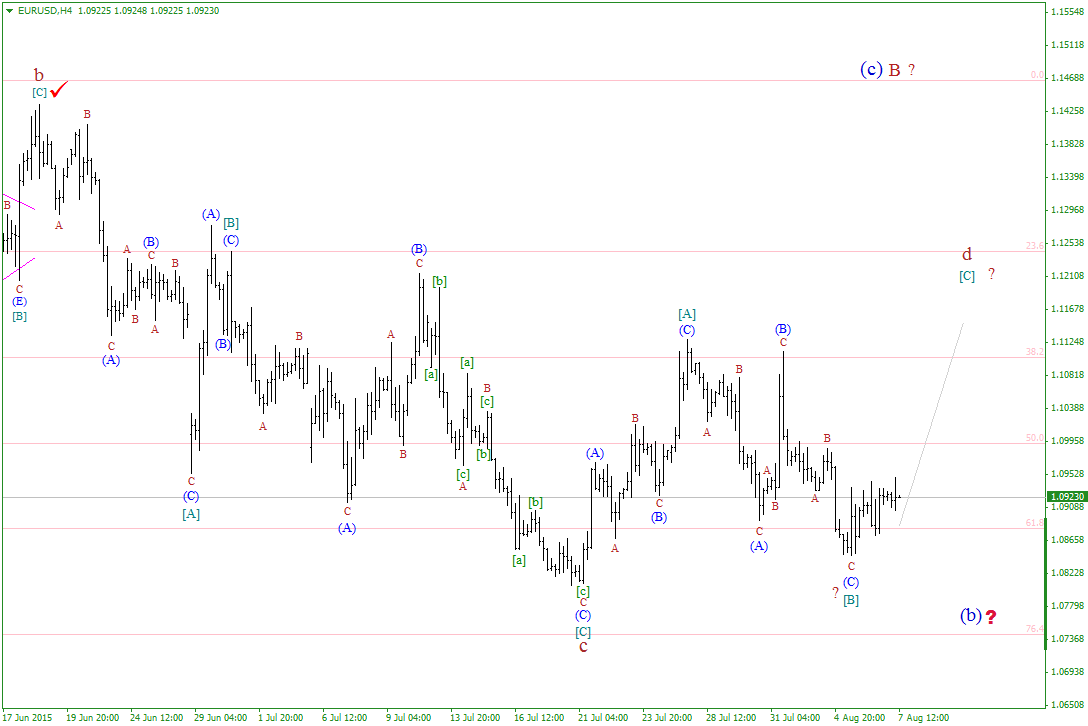 Сложившаяся при этом волновая ситуация, позволяет рассматривать минимум от 5-го августа в качестве завершения волны [В], в d, в (b), в В, которая к началу сегодняшних торгов сохранила вполне завершенный вид. Если это так и волна [В], в d, в (b), не станет еще больше усложнять свою волновую структуру, то валютная пара может перейти в стадию формирования волна [С], в d, возобновив восходящее движение в направлении уровня 12-й, или даже 13-й фигуры.