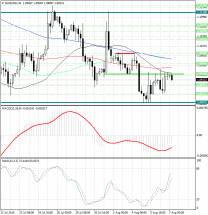 Осциллятор стохастик 'неуверенно' вышел из зоны перепроданности и в данный момент не формирует четких сигналов, поскольку линия %К практически пересеклась с линией %D.