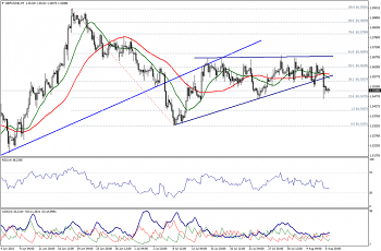 Вчерашнее резкое снижение привело к пробою уровня поддержки и уровня 23,6% коррекции Фибоначчи (1,5555). Так же, RSI двигается ниже отметки 50,00, а скользящие средние оказывают давление на пару сверху. Теперь, учитывая стабильность ниже области 1,5555/60 мы ждем пробоя уровня 1,5470, что приведет к дальнейшему ослаблению пары.