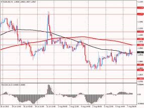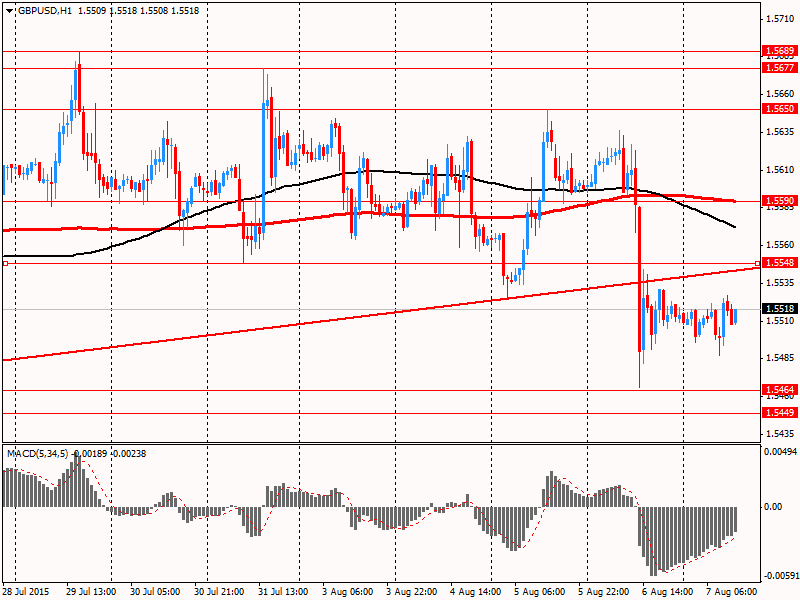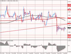 Дневной технический анализ по GBP/USD Сопротивление 3: $1.5650 (максимум 5 августа) Сопротивление 2: $1.5590 (МА(200) для Н1) Сопротивление 1: $1.5548 (минимум 31 июля) Текущая цена: $1.5518 Поддержка 1: $1.5464 (минимум 24 июля) Поддержка 2: $1.5449 (минимум 14 июля) Поддержка 3: $1.5419 (максимум 9 июля)