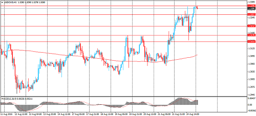 Технический анализ по USD/CAD Сопротивление 3: C$1.3400 (психологический уровень) Сопротивление 2: C$1.3300 (психологический уровень) Сопротивление 1: C$1.3290 (сессионный максимум) Текущая цена: C$1.3280 Поддержка 1: C$1.3260 (максимум азиатской сессии 24 августа) Поддержка 2: C$1.3210 (максимум 5 августа) Поддержка 3: C$1.3150/75 (максимумы 17 и 19-20 августа, минимум 24 августа)