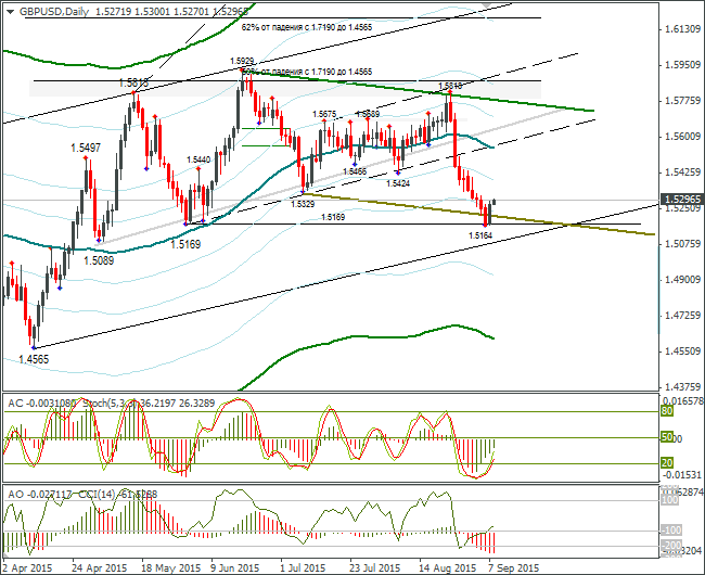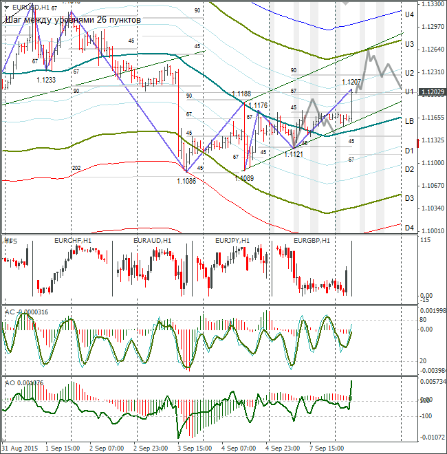 Серыми линиями я построил канал. Коррекционное движение до 1,1245 вполне допустимо, выше – нет. Если день закроется выше 1,1245, евробыки двинутся к трендовой линии. А это примерно в район 1,1320. После такого роста про падение придётся забыть до 16-17 сентября (заседание ФРС). Посмотрим, как откроются американские биржи после праздника.