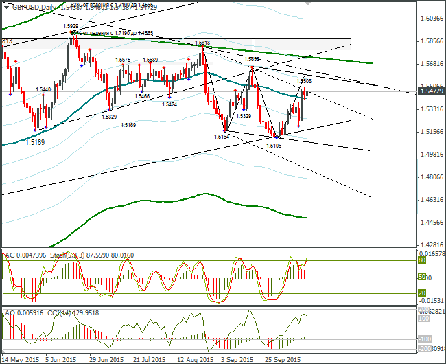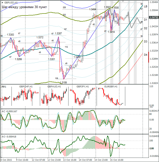 Фунт стабилизировался на уровне 1,5470. При такой модели движение может продолжиться как вверх, так и вниз. Я выбрал падение до 1,5420 и рост до 1,5470. Дневная трендовая линия не пробита.