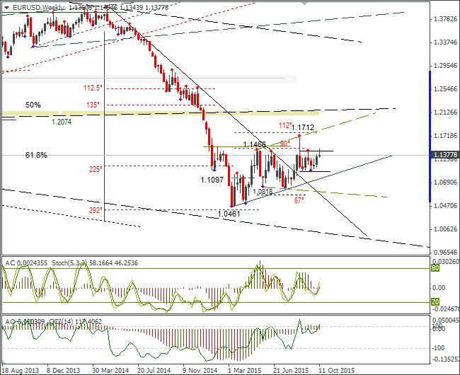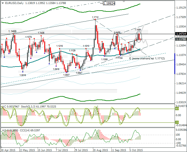 Внутридневные цели: максимум – 1,1415, минимум – 1,1330, закрытие – 1,1350. Внутридневная волатильность за последние 10 недель: 121 пункт (4 знака); Евро/доллар упал с максимума 1,1494 на 112 градусов. Евро остановился на трендовой линии. Учитывая свечную формацию на днях, есть основания полагать, что она будет пробита после отката и падение евро усилится. К 19 октября можем вернуться к 1,1280.