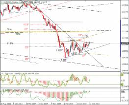 Быки обновили максимум, но не смогли закрепиться за трендовой линией. Сегодня ситуация будет зависеть от единой валюты. Если евро/доллар двинется вниз, то фунт/доллар развернётся следом за евро. Если по евро начнётся восстановление, быки по фунту будут формировать плацдарм для рывка к 1,5630. Там проходит основная трендовая линия.