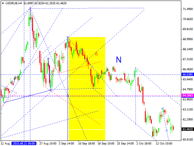 Российский рубль торгуется в структуре третьей волны снижения. Ожидаем отработку уровня 60.00. Далее на очереди рассматриваем возможность коррекции к уровню 64.50. Затем - опять снижение к уровню 57.00.
