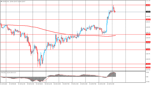 Утренний технический анализ по USD/JPY Сопротивление 3: Y121.75 (максимум 28 августа) Сопротивление 2: Y121.25 (максимум 25 сентября) Сопротивление 1: Y121.00 (сессионный максимум) Текущая цена: Y120.67 Поддержка 1: Y120.30 (минимум американской сессии 22 октября) Поддержка 2: Y119.60 (минимум 22 октября) Поддержка 3: Y119.25 (минимум американской сессии 19 октября)