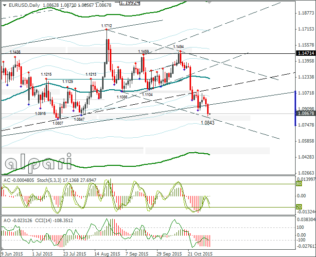 Евро/доллар опустился ниже минимума 28 октября 2015 года. Осталось пройти зону поддержки 1,0807-1,0838 и откроется дорога к 1,0520. По индикатору АО нет бычьей дивергенции, поэтому жду обновление минимума. Моя цель – 1,0813. Если кросс евро/фунт мешать не будет, то возможен тест 1,0800. Хотя сильно сомневаюсь, что перед пейролсом уйдём под 1,0800.