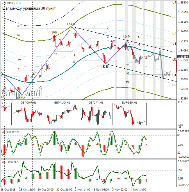 Отработка прогноза была идеальная. Курс фунт/доллар снизился от lb до 1,5360. Фунт не хочет сильно падать, потому что его сдерживает своим снижением кросс евро/фунт.