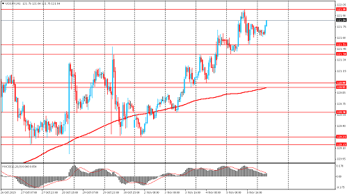 Утренний технический анализ по USD/JPY Сопротивление 3: Y123.00 (психологический уровень) Сопротивление 2: Y122.75 (максимум американской сессии 21 августа) Сопротивление 1: Y122.00 (максимум 5 ноября) Текущая цена: Y121.84 Поддержка 1: Y121.40-50 (минимумы 5 ноября) Поддержка 2: Y120.95-00 (минимумы 3-4 ноября) Поддержка 3: Y120.60 (минимум 3 ноября)