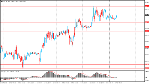 Утренний технический анализ по USD/CHF Сопротивление 3: Chf0.1040 (максимум европейской сессии 18 марта) Сопротивление 2: Chf0.1000 (психологический уровень) Сопротивление 1: Chf0.9975 (максимум 5 ноября) Текущая цена: Chf0.9957 Поддержка 1: Chf0.9940 (минимум американской сессии 5 ноября) Поддержка 2: Chf0.9920 (минимум 5 ноября) Поддержка 3: Chf0.9885 (минимум 4 ноября)