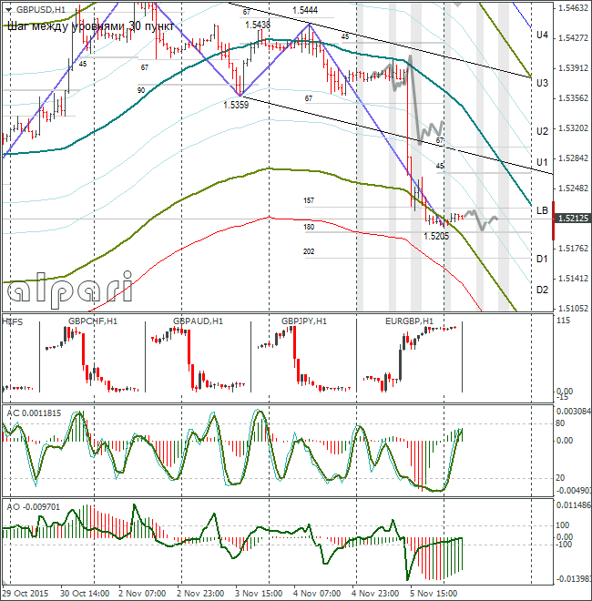 Вот и дошли до 1,52. Падение остановилось на линии D3. И это нормальное отклонение от Lb. Сегодня пейролс, поэтому мой прогноз до 16:30 мск – боковик на уровне 1,5208.