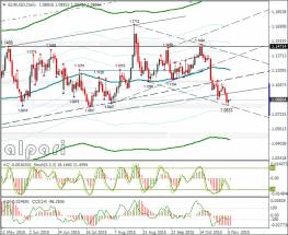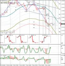 Курс евро/доллар достиг расчётной зоны 1,0807-1,0838 из последней идеи по EURU/USD. Теперь можно ожидать пробой 1,0800. Я Вам говорил, что у меня по циклам падение курса евро получается до 18-20 ноября. Там возможна восходящая коррекция. Переходим на закладку «Недельный».