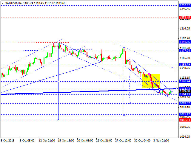 Золото предлагает на сегодня рассмотреть возможность восстановления к уровню 1113, тест снизу. Далее ожидаем продолжение снижения к уровню 1089. Затем - тест снизу 1104. Позже - новое снижение на перекрытие уровня 1071.