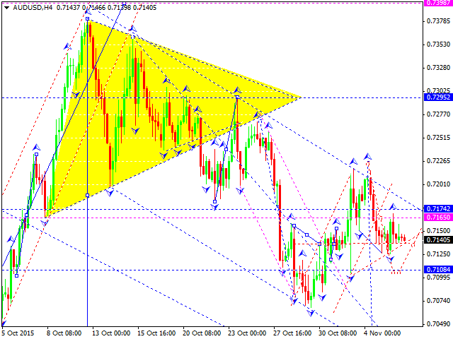 Австралийский доллар к доллару США торгуется в консолидационном диапазоне в очередной волне снижения. На сегодня рассматриваем возможность обновления минимума с перекрытием уровня 0.7108. Далее не исключаем рост к уровню 0.7174. Затем - опять по тренду вниз, на отработку уровня 0.7000.