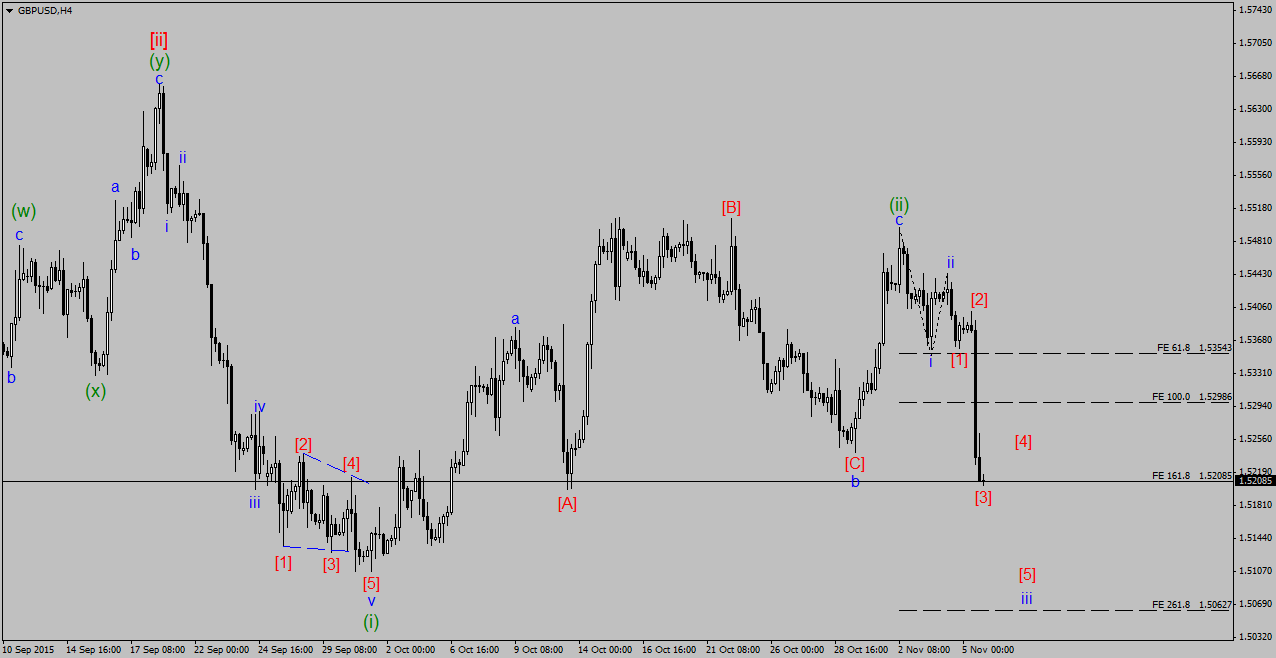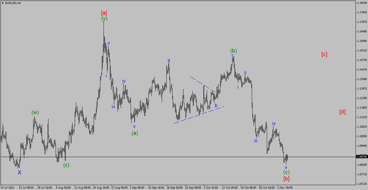Все ближе критический уровень для треугольника - 1.0805. Пока не взяли основной вариант в силе и ожидается рост в рамках волны [c] of Y. В случае подолжения нисходящей динамики можно будет говорить о формировании волны iii of (iii). Рост с 1.0895 до 1.1075 был волной ii of (iii).
