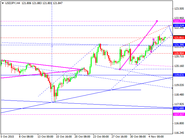 Валютная пара доллар иена продолжает растяжение структур роста как альтернативу. Рассматриваем возможность роста на отработку уровня 122.77. Далее - возврат к уровню 121.39. Затем - опять рост на отработку уровня 124.00.