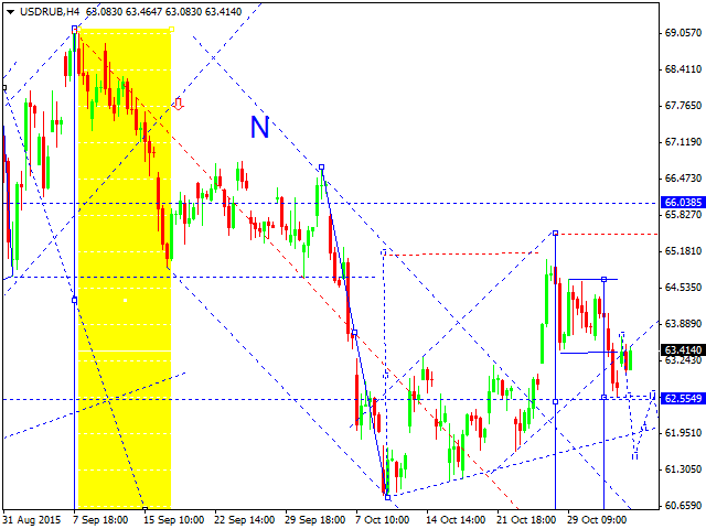 Российский рубль продолжает торговаться в узкой консолидации. На сегодня ожидаем снижение к уровню 60.50. Далее - тест снизу уровня 62.55. Затем - новое снижение на отработку уровня 59.55.