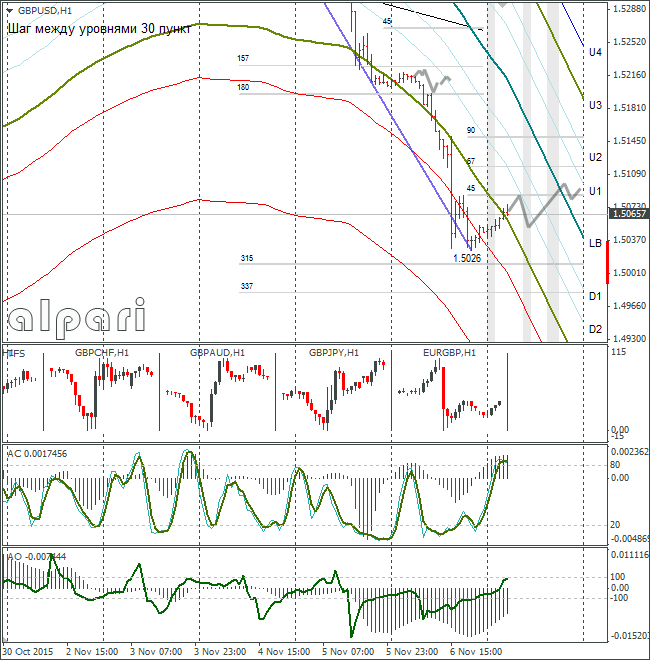Цена вышла из зоны зашкала. Если в пятницу было импульсное движение, то в понедельник я всегда рассматриваю движение против него. С 1,5046 жду коррекционное движение до 1,5110/15. Не исключаю коррекции до 1,5140 (lb на 1H). Главное не выше 1,5220, иначе нарушится баланс, и быки могут перехватить инициативу.