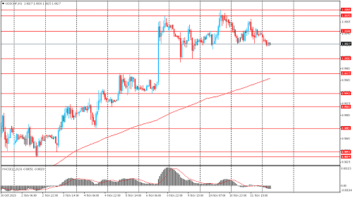 Утренний технический анализ по USD/CHF Сопротивление 3: Chf1.0100 (психологический уровень) Сопротивление 2: Chf1.0075-85 (максимумы 6-10 ноября) Сопротивление 1: Chf1.0050 (сессионный максимум) Текущая цена: Chf1.0027 Поддержка 1: Chf1.000 (минимум американской сессии 9 ноября) Поддержка 2: Chf0.9975 (максимум 5 ноября) Поддержка 3: Chf0.9940 (минимум 6 ноября, MA 200 H1)
